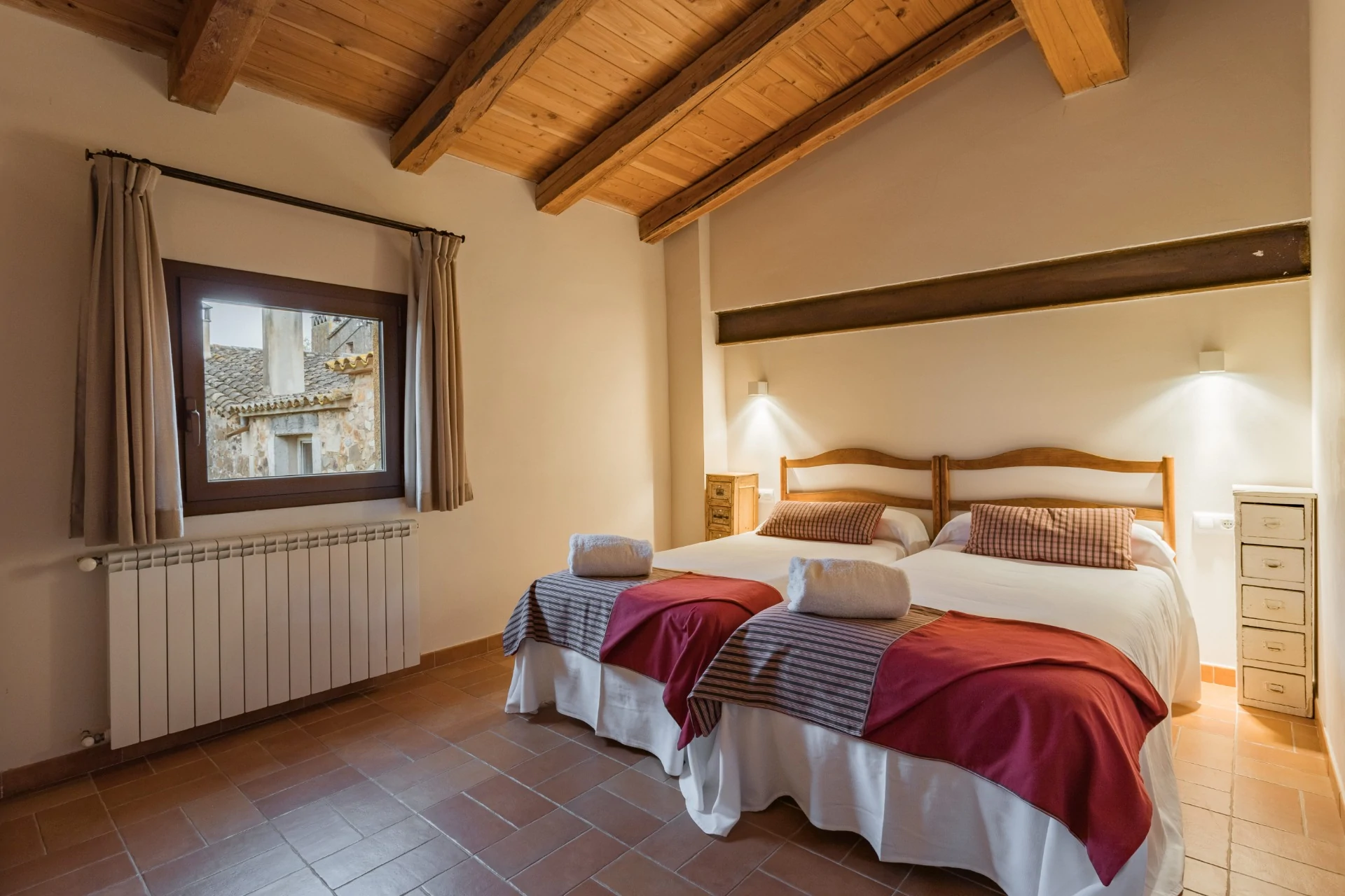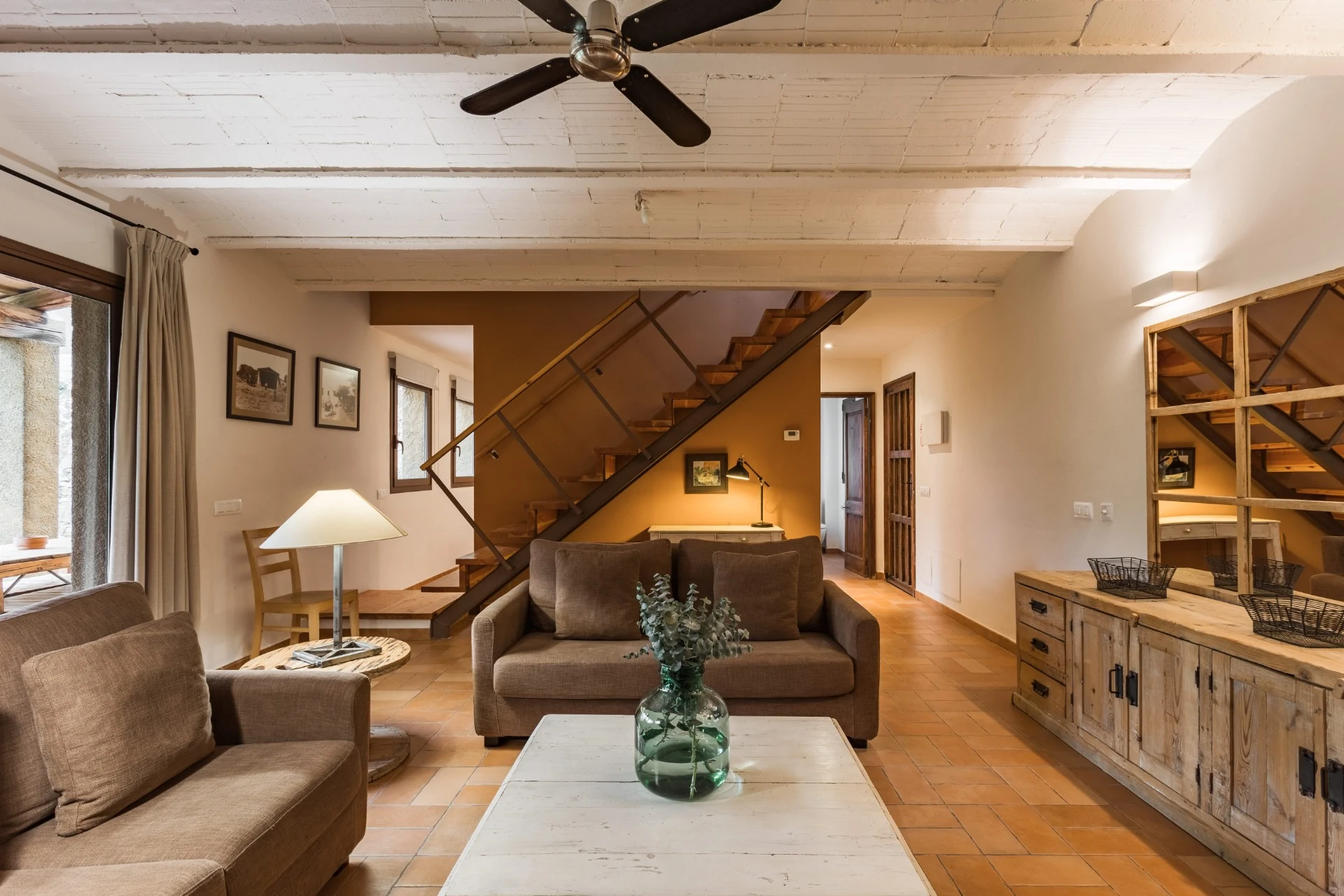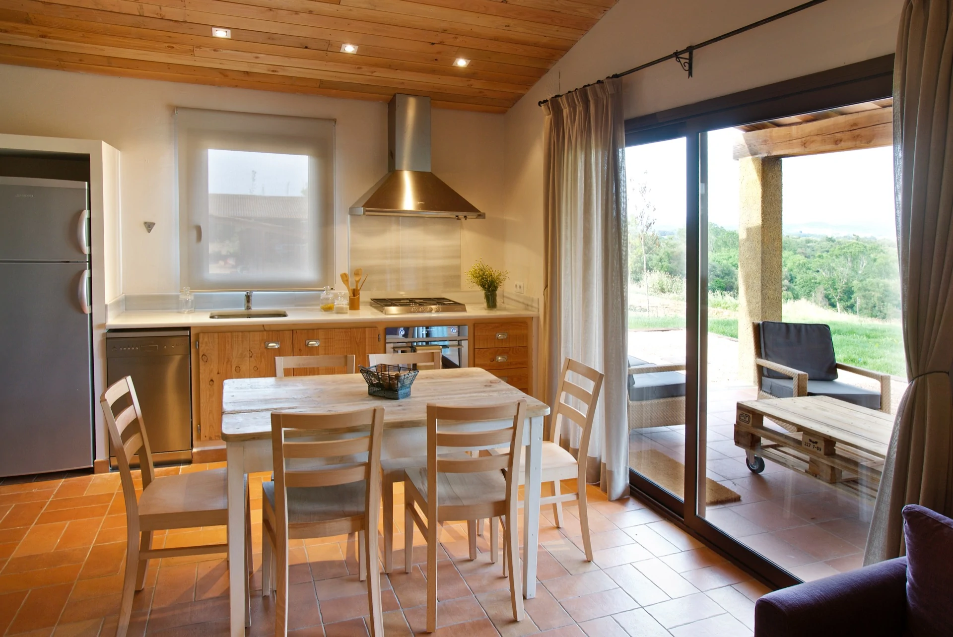 El Mas Vallès es el apartamento que se distribuye en 65 m2 en planta baja, con las habitaciones, el baño, la cocina-salón, chimenea y terraza porticada.