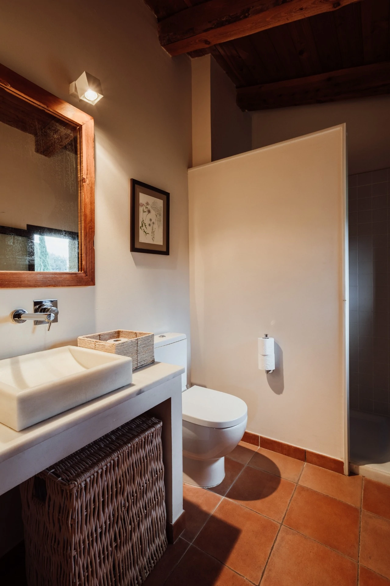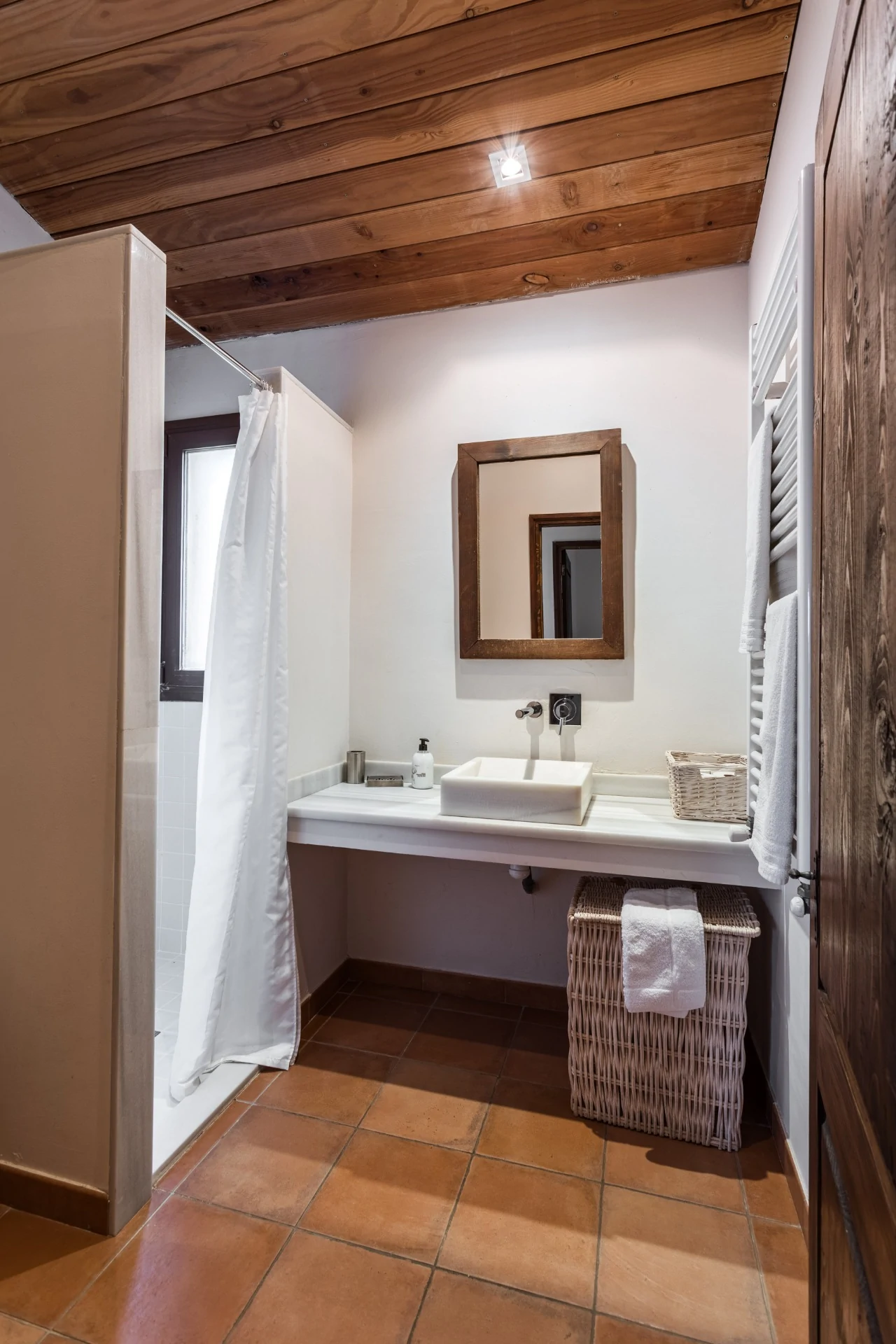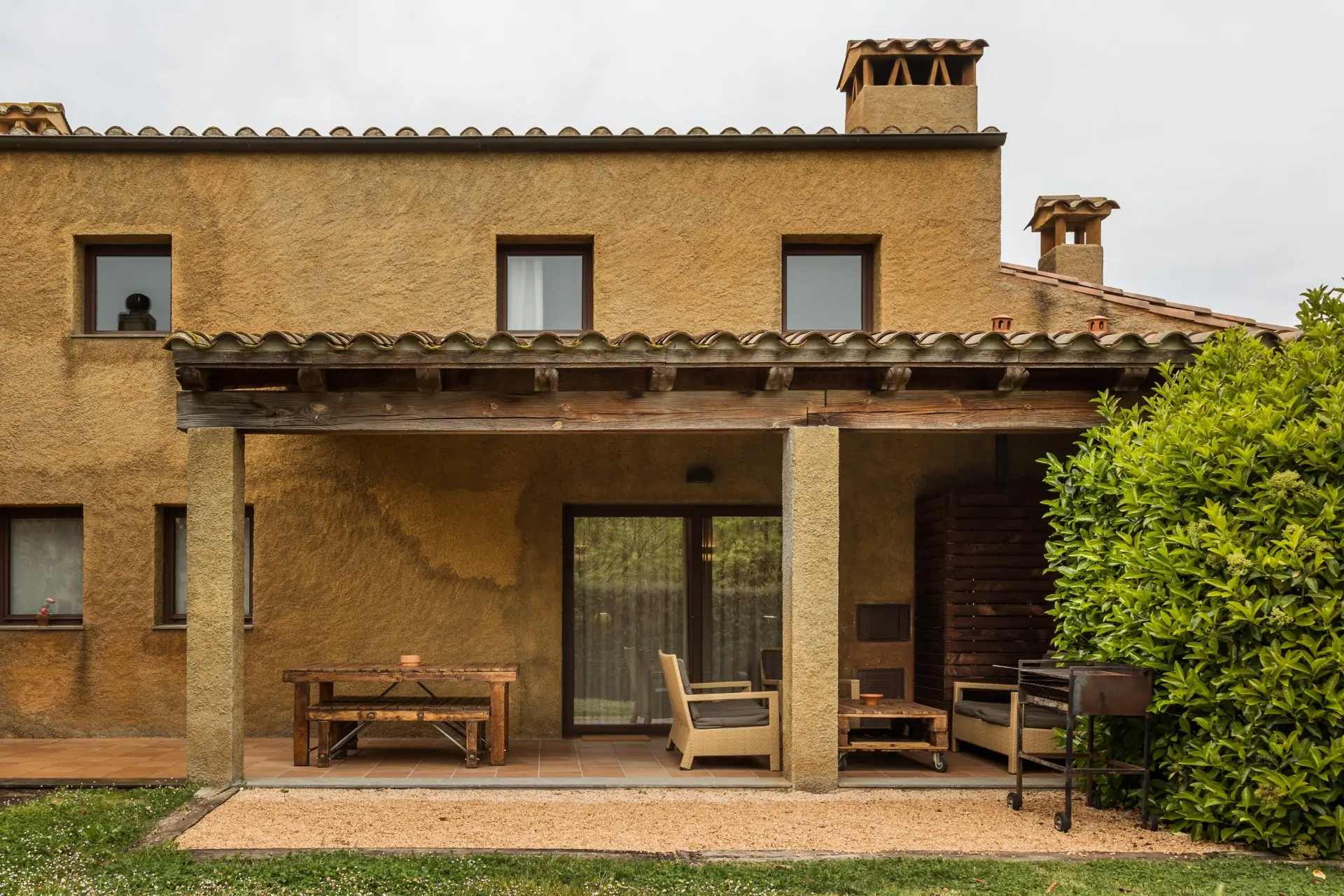 El Mas Vallès es el apartamento que se distribuye en 65 m2 en planta baja, con las habitaciones, el baño, la cocina-salón, chimenea y terraza porticada.